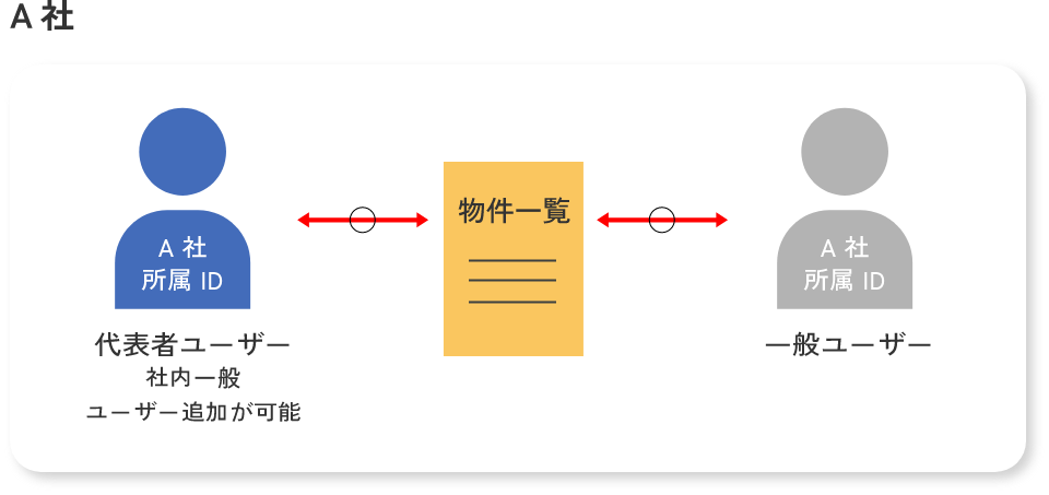 一方、物件情報は、会社毎に表示されるため、会社に登録されたユーザーは同じ物件情報を閲覧・共有することができます。