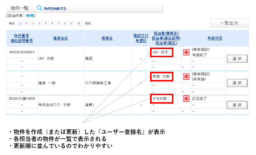 常に会社内の物件が一覧表示されているので、急な休みで別の担当者が代わって訂正の対応を行ったり、リモート業務等で同じ事務所内にいなくても物件の確認・更新を行なったりと、常時共有が可能です。