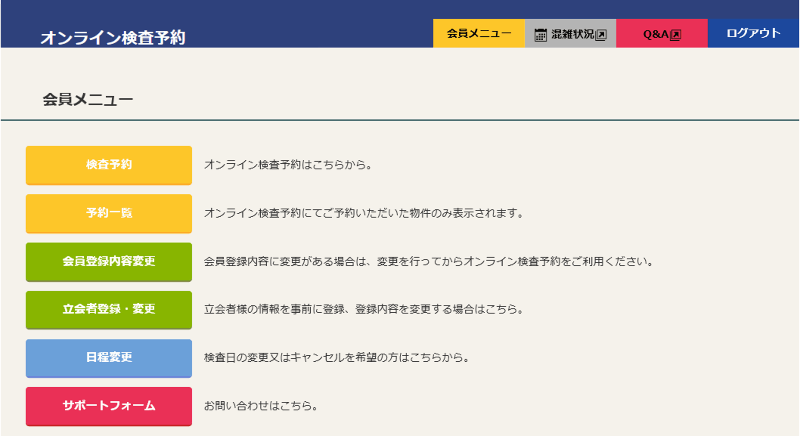 はじめに、オンライン検査予約 会員メニューページを紹介いたします。より便利に使っていただけますので是非ご活用ください。