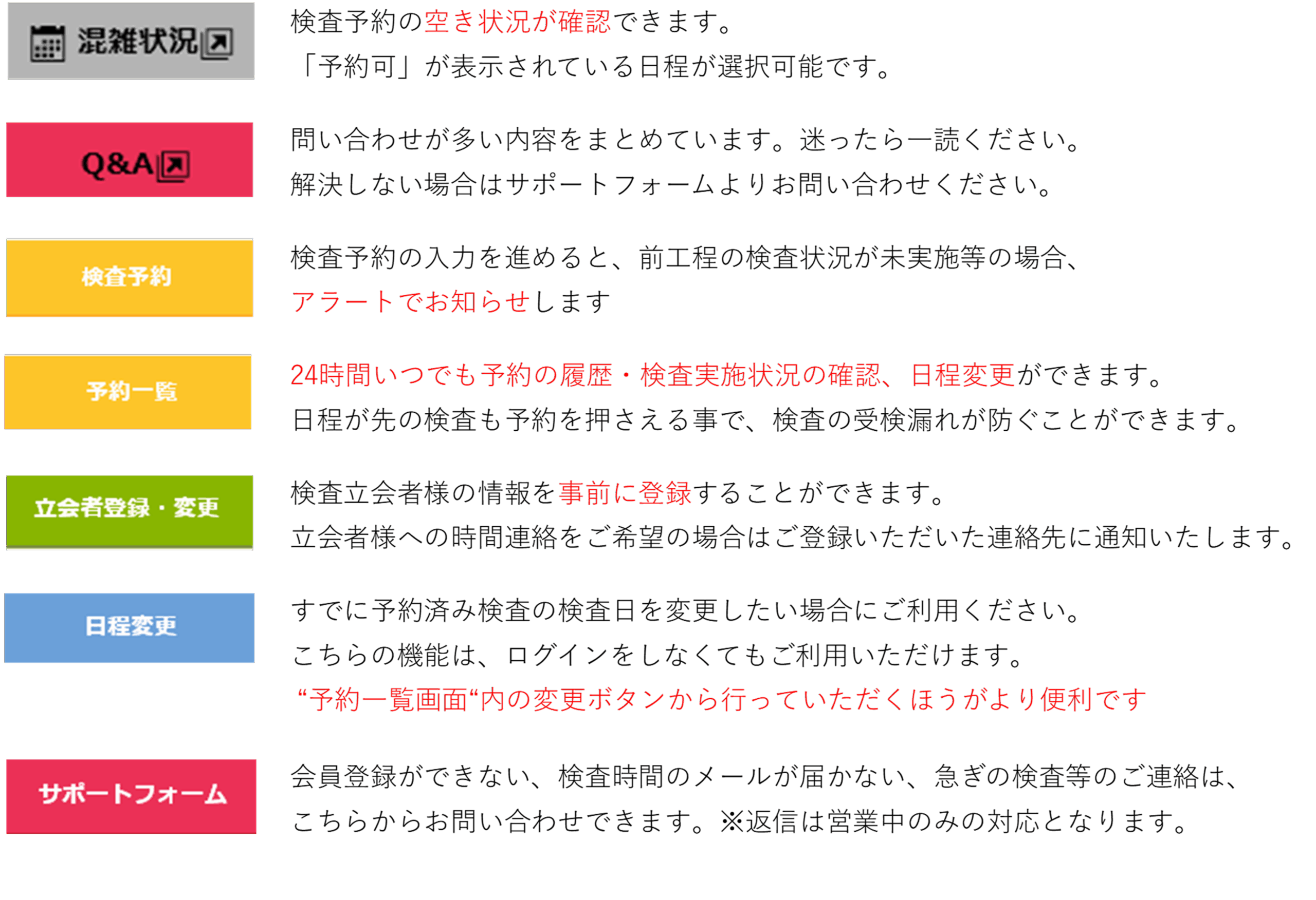 注:検査日の変更については、【予約日変更完了】の返信メールを以て検査日の確定となります。